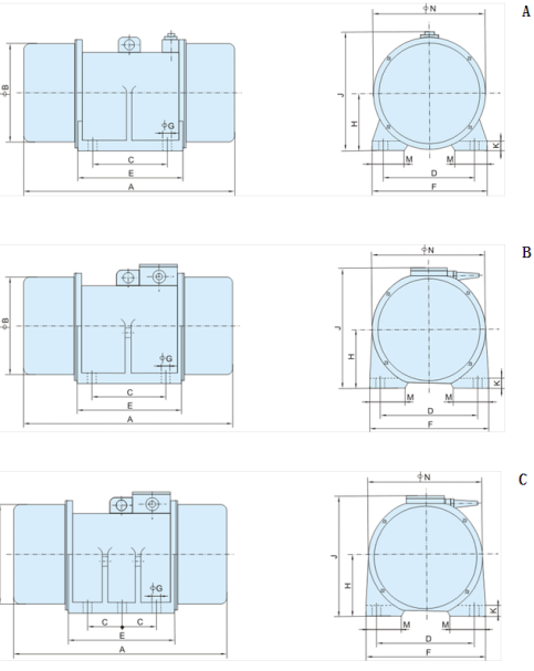 XVM-A振動(dòng)電機(jī)安裝圖: